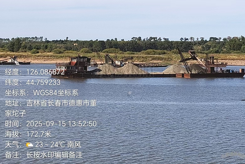 2024年5月,该公司以“榆树市五棵树镇湛江寺钱江清淤项目”为由,从榆树市政府和河务局获取专项审批,获批作业区域为湛江寺门口特定范围。但据徐连海提供的证据,洪福砂石公司并未在审批区域开展清淤工作,反而将采砂船开至德惠市许家店采区及五棵树沙场门口——两处均非其合法采区及清淤范围。